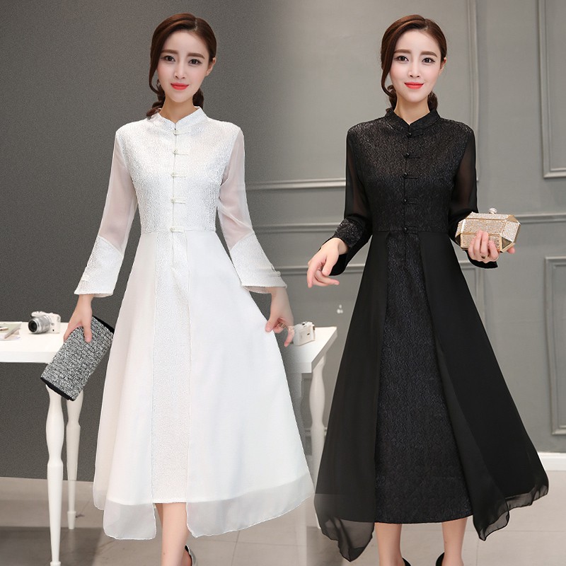 Tf Fashion Dresses For Women Chinese New Year Dressstand Up Collar Long Sleeved Embroidered Cheongsam Dress Improved Fashion Long Dress Dinner Dress Ready Stock High Quality Lazada