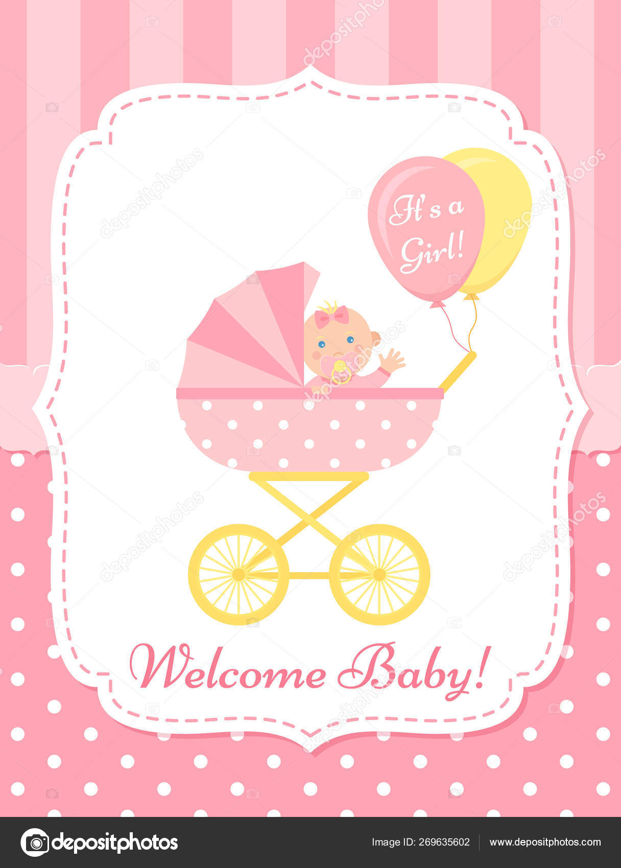 Baby Shower Card Design Vector Illustration Birthday Party Background Baby Shower Invite Card Vector Baby Girl Design